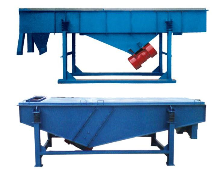 直線振動篩結構:直線振動篩由振動電機、篩箱、篩網(wǎng)、傳振體、減振裝置組成。工作原理:當縱向安裝在篩體上的兩臺振動電機相對轉動時,兩臺振動電機兩端的偏心塊便產(chǎn)生額定激振力,其產(chǎn)生在橫向的激振力相互抵消,其縱向的激振力通過傳振體傳遞到整個篩面上,從而使篩面上的物料受其激振力而在篩網(wǎng)面上向出料口方向跳躍運動,小于篩孔的物料通過篩孔落到下層,經(jīng)連續(xù)躍后經(jīng)出料口流出,由于篩分過程合理,便可以將物料經(jīng)過振動篩分級后,取得幾種不同程度的物料,完成物料的分級作業(yè)。